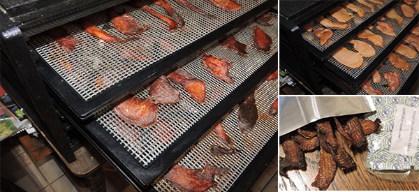 This sounds good. I have got to get glass to make a solar dryer! And, when the salmon and shad are running, the fish were split and hung on piles over smoky fires. Acid in the smoke kills bacteria, but like chicken it still raw, and any animal of fish can carry parasites that the smoke doesn’t kill. We get dried sheets of beef at the Carniceria in Mammoth that makes good jerky, but it’s still raw and is baked. Yeah, I am a woosie, but after butchering animals for decades, I know what’s in there and know i do not want it in me, or in you. 🙂 niio