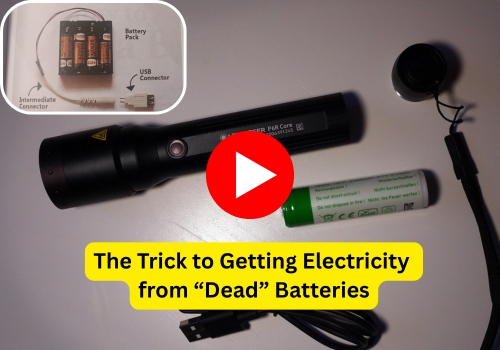 A small LED on the flash can still work on a mostly-dead battery for a few minutes. You can use that quick blast of light to find something in the dark, read a label, or follow a trail without draining your main flashlight.