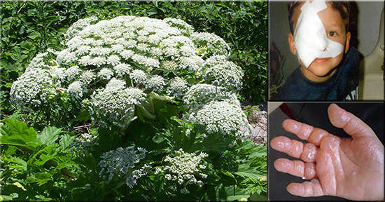 If you look at the hands in the first photo you will see a photo of a 10 year old girl that was infected by this plant. As you can see the blisters in the photo are enormous and the rest of her hand is swollen.
