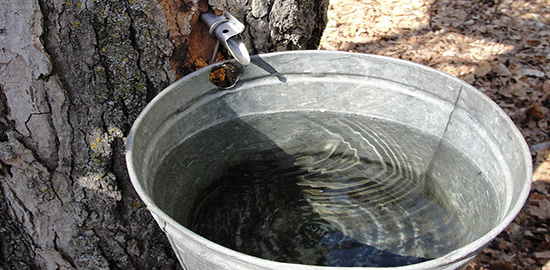 Because of maple’s high sugar content, generous sap flow, mellow flavor, and compliant nature, maple became the premier sugar tree in North America – except for Alaska, where birch trees are plentiful and maples are small and scarce. You need only about 40 gallons of sap to make one gallon of syrup (better – triple – than birch). The downside is that maple sap generally flows for only 4 to 6 weeks, with the best sap produced early on in the sap-flowing season (late February).