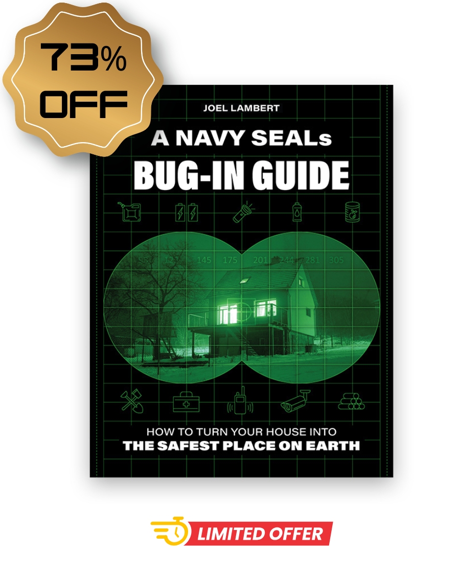 This is the first-ever BUG-IN Guide. Inside, former Navy SEAL Joel Lambert shows you the emergency preparedness, food and water stockpile secrets, survival tactics, and home security measures that’ll turn your house into the safest place on Earth.